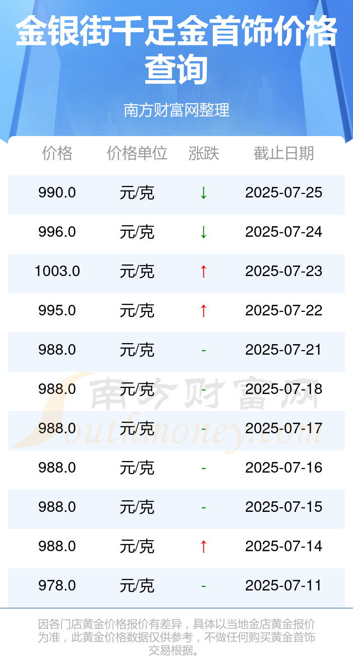 以上数据仅供参考,与当地品牌商、金店、企业及银行营业厅报价有所差异,依产品不同需另附工费,请以实际报价为准。本站对价格等不作任何保证或承诺,请自行核实相关内容,因此所引起的后果与本站无关。