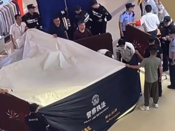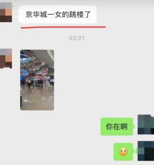 一开始,很多人以为是某个物品倒塌了,后来才知道,原来是有人在商场内跳楼了。